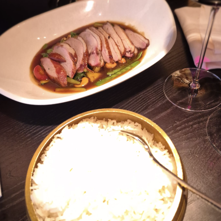Unsere Hauptgerichte waren deutlich größer als erwartet und konnten geschmacklich problemlos mit den Vorspeisen mithalten. Ein kleiner Wermutstropfen war lediglich, dass die Ente nicht ganz so knusprig war, wie wir es uns gewünscht hätten.